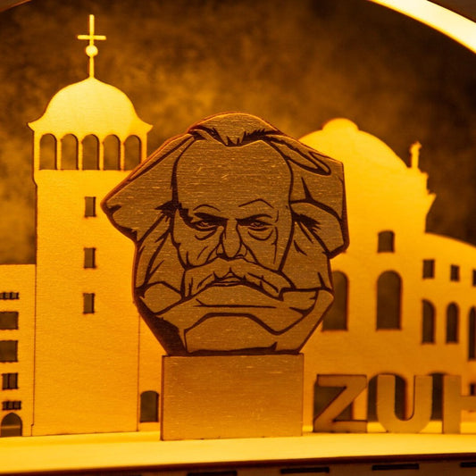 Holz-Schwibbogen Karl Marx – Erzgebirge Tradition, batteriebetrieben (45 cm)