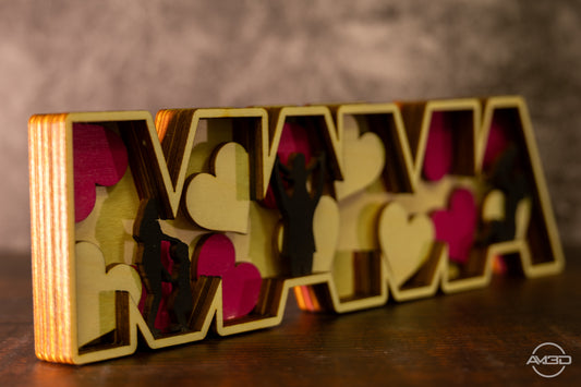 "MAMA" 3D-Holzschriftzug mit Herz & Silhouetten – Liebevoll gestaltetes Geschenk zum Muttertag