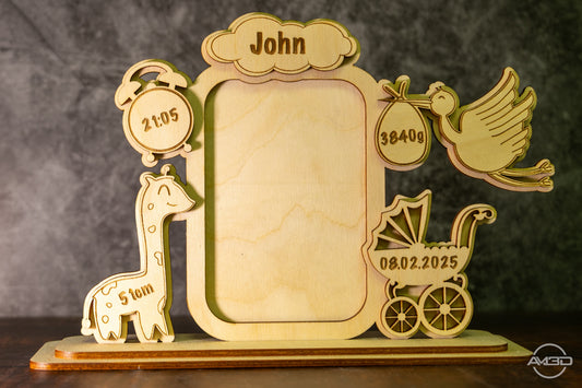 Personalisierter Holz-Bilderrahmen zur Geburt – mit Name, Gewicht, Größe & Geburtsdatum